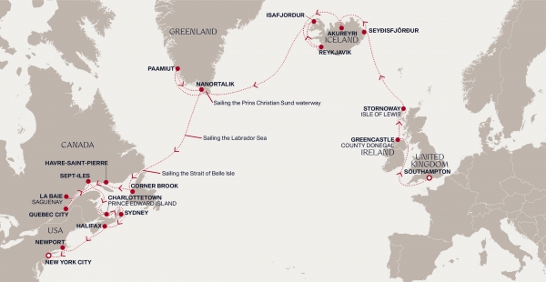 Sie suchen eine ausgedehnte Luxusreise mit einer besonderen Route und besonders viel Natur? Dann wird diese Grand Journey Sie begeistern. Von Southampton aus reisen Sie durch die Irische See nach Island. Nun erleben Sie Island XXL: 5,5 Tage lang in 4 Häfen, darunter auch zwei Übernacht-Aufenthalte in Reykjavik. Sie haben viel Zeit für die Gletscher, Gipfel und Geysire, für Begegnungen mit dem ewigen Eis und atemberaubende Fotomotive. Grönland macht genau da weiter: Mit dem werksneuen Luxusliner EXPLORA III passieren Sie den Prins Christian Sund und nehmen die Stille, die die mächtige Natur ausstrahlt, in sich auf. Nach zwei Häfen in Grönland nehmen Sie Kurs auf den beeindruckenden Nordosten Kanadas und schließlich auf New York, Ihren Zielhafen.