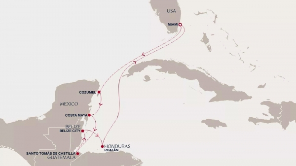 Zwischen tropischer Leichtigkeit, karibischer Lebensfreude und den geheimnisvollen Spuren der Maya entfaltet sich eine Reise voller Farben, Kontraste und intensiver Eindrücke. An Bord der EXPLORA I beginnt in Miami eine achttägige Entdeckungsreise durch die faszinierende Welt Mittelamerikas – geprägt von türkisblauem Meer, üppiger Natur und jahrtausendealter Geschichte. Von den lebendigen Küsten Mexikos über die üppigen Regenwälder Guatemalas bis hin zu den karibischen Inselwelten von Belize und Honduras erleben Sie eine Route, die kulturelle Schätze und tropische Paradiese miteinander verbindet. Dazwischen laden zwei Seetage dazu ein, das Tempo zu verlangsamen, den Blick über das offene Meer schweifen zu lassen und die besondere Atmosphäre an Bord zu genießen.