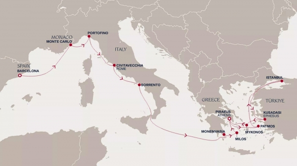 Von der katalanischen Küste bis in die Ägäis entfaltet sich eine Reise, die europäische Kulturgeschichte, landschaftliche Schönheit und mediterrane Lebensfreude in sich vereint. An Bord der EXPLORA II erwartet Sie ein luxuriöses Refugium, das Entschleunigung und Entdeckung harmonisch verbindet. Erleben Sie eine 16-nächtige Seereise voller Kontraste – von den glitzernden Häfen der Riviera über die antiken Schätze Italiens bis zu den sonnenverwöhnten Inseln Griechenlands und der Magie Istanbuls. Jede Etappe eröffnet ein neues Kapitel voller Farben, Düfte und Eindrücke. Genießen Sie die Tage an Bord mit kulinarischen Höhepunkten, großzügigen Suiten und dem Gefühl von Freiheit auf See – und lassen Sie sich vom „Ocean State of Mind“ tragen, während Sie das Mittelmeer in all seiner Vielfalt erleben.
